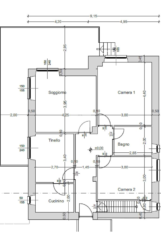 La soluzione è composta da ingresso, soggiorno, tinello con cucinino, bagno di servizio e due camere da letto.