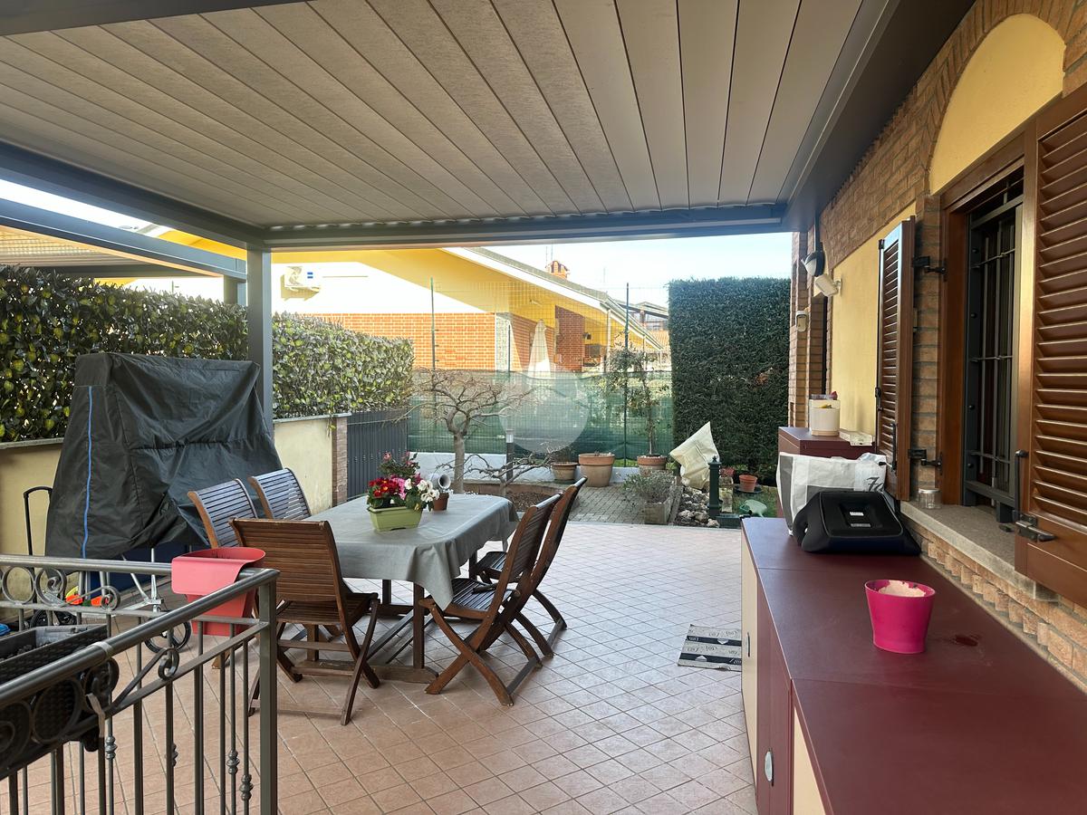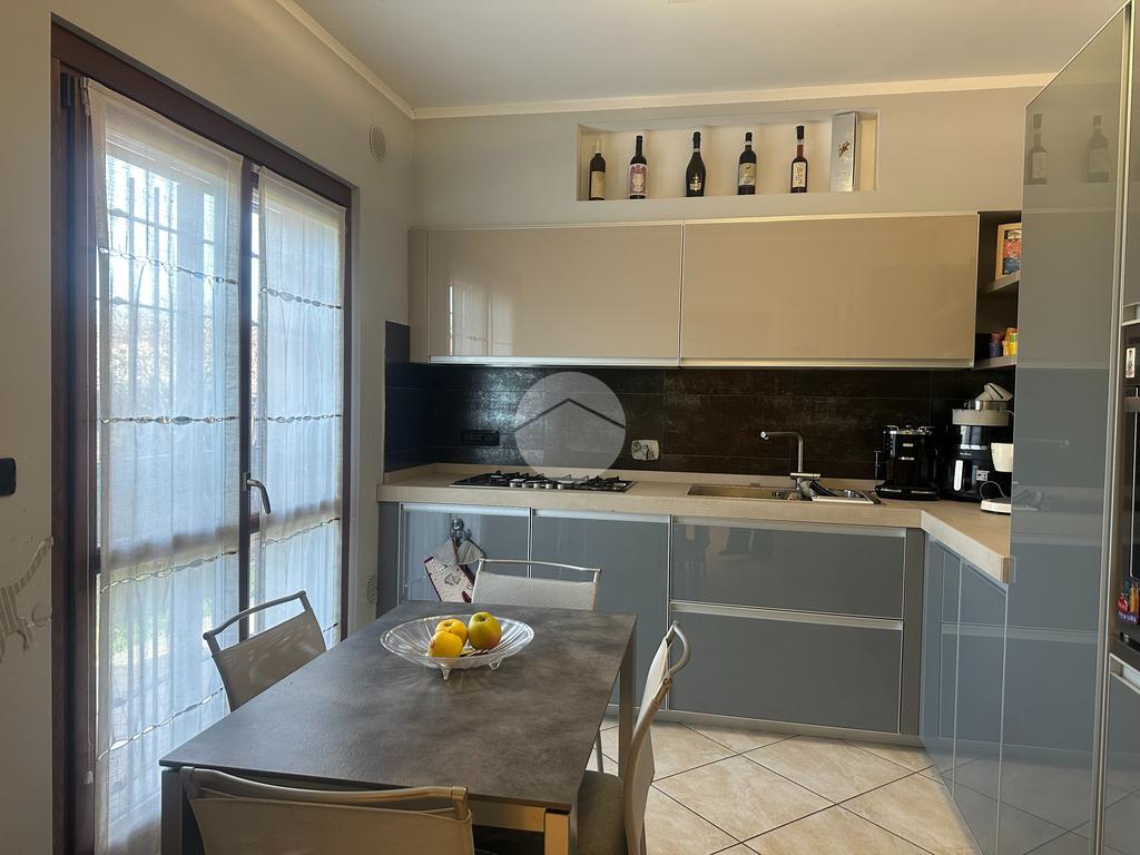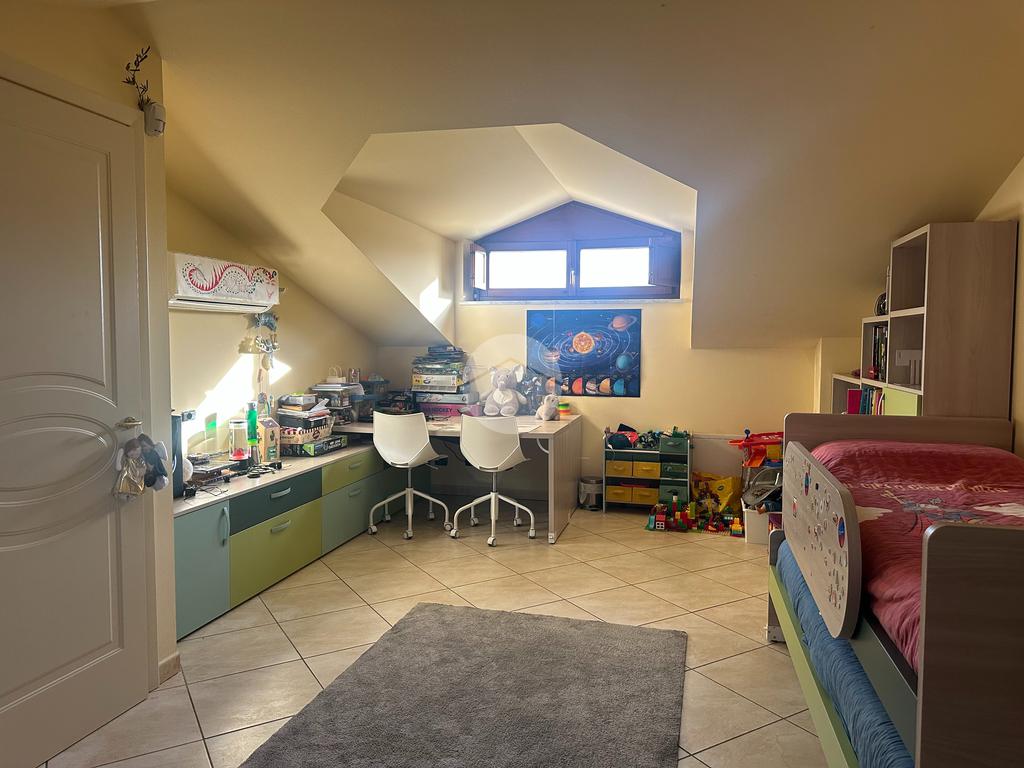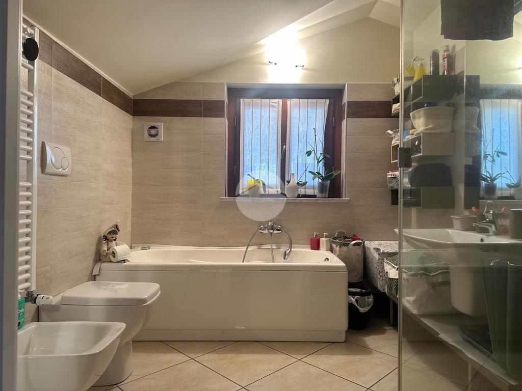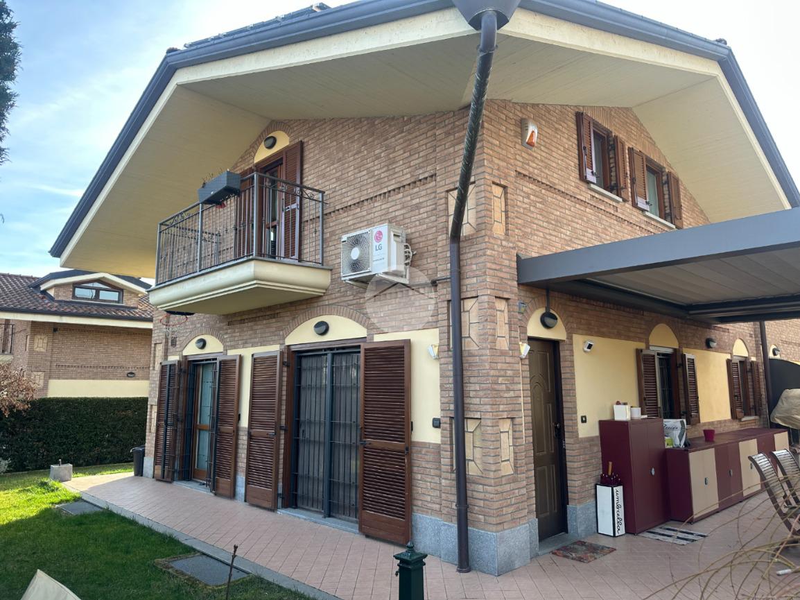 Splendida porzione di villa bifamiliare in posizione esclusiva lungo il Parco Fluviale del Sangone, immersa nel verde e nella tranquillità, ma allo stesso tempo comoda ai principali servizi. Una soluzione ideale per chi è alla ricerca di indipendenza, comfort abitativo e dotazioni tecnologiche di alto livello. L’abitazione, edificata nel 2009, si presenta in eccellenti condizioni grazie a costanti interventi di manutenzione e miglioramento effettuati nel tempo. L’ingresso al piano terra si apre su un luminoso soggiorno, collegato alla cucina abitabile rinnovata nel 2024, dotata di infissi in legno con doppio vetro e apertura vasistas. Sullo stesso piano troviamo una camera da letto e un bagno finestrato con doccia. Gli infissi sono protetti da inferriate, persiane e zanzariere. Il piano superiore, con altezza massima di 2,53 mt e minima di 1,30 mt, offre ambienti accoglienti e ben sfruttabili. Qui si sviluppa la camera matrimoniale con finestra e uscita sul balcone con vista sul Castello di Rivoli, completa di cabina armadio finestrata. La seconda camera è dotata di velux automatizzato con tapparella regolabile tramite telecomando. Entrambe le stanze sono servite da climatizzatori inverter. Il piano è completato da un elegante bagno finestrato con doccia e vasca idromassaggio. Anche gli infissi della mansarda, sostituiti nel 2024, sono in legno con doppio vetro. Al piano interrato troviamo una spaziosa taverna rifinita con bocche di lupo protette da inferriate, oltre a lavanderia e ripostiglio. Direttamente collegato vi è il box auto doppio in lunghezza, ideale per due autovetture e ulteriore spazio di deposito. Dal punto di vista impiantistico, l’immobile garantisce elevata efficienza energetica grazie all’impianto fotovoltaico da 6 kW installato nel 2022 con tre batterie di accumulo da 10 kW ciascuna marca SolarEdge, wall box per la ricarica di auto elettriche e caldaia ibrida a condensazione Daikin. Il comfort è assicurato dal riscaldamento a pavimento, dalla gestione indipendente del riscaldamento per ciascuno dei tre piani e da linee elettriche separate per ogni sicurezza rappresenta un ulteriore valore aggiunto, l’abitazione è dotata di sistema antifurto volumetrico e perimetrale esterno con esclusione selettiva delle finestre, oltre a protezione volumetrica e perimetrale interna, il tutto gestibile da cellulare. Completano le dotazioni la parabola satellitare e i citofoni interni comunicanti. All’esterno, il giardino semi piantumato è servito da impianto di irrigazione automatico programmabile e da illuminazione esterna anch’essa programmabile. La pergotenda automatizzata con telecomando e sensori di vento e luminosità rende lo spazio esterno vivibile in ogni stagione. Il tetto è stato completamente revisionato nel 2025 con sostituzione delle tegole e controllo generale. Una proposta moderna, efficiente e curata in ogni dettaglio, perfetta per chi desidera qualità costruttiva, tecnologia e una posizione privilegiata a contatto con la natura. Per ulteriori informazioni o per fissare una visita, non esitate a contattarci.